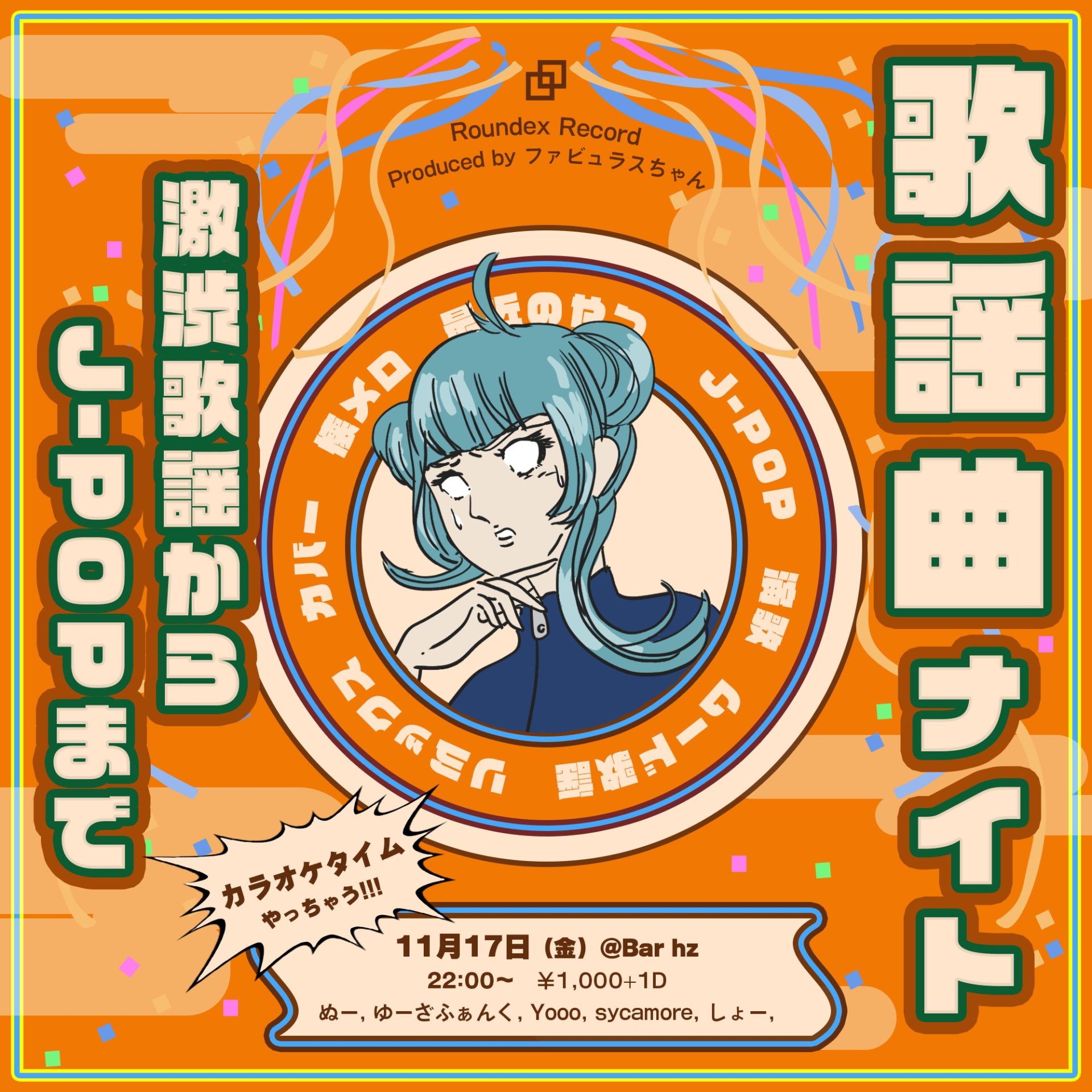 昭和歌謡・J-POPをテーマに自由奔放に流すナイト。 突然聴きたくなる曲もあるとおもうので、Spotifyとカラオケタイムを1時間ごとに15分挟みます。