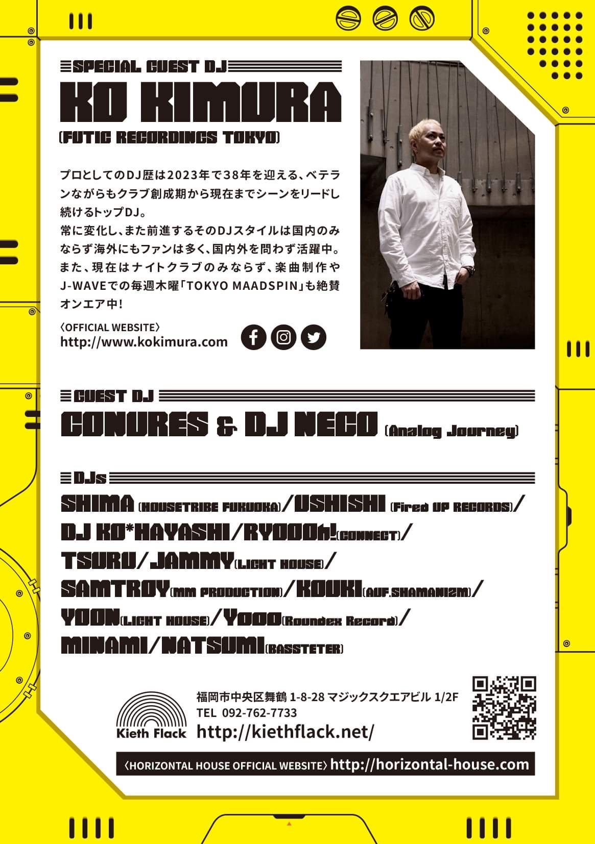 • [2F] ■SPECIAL GUEST DJ: KO KIMURA (FUTIC RECORDINGS TOKYO) ■GUEST DJ: CONURES & DJ NECO (Analog Journey) ■DJ SHIMA (HOUSETRIBE FUKUOKA), USHISHI (Fired UP RECORDS), DJ KO*HAYASHI, KOUKI (AUF.SHAMANIZM), YOON (LIGHT HOUSE) [1F] ■DJ: RYOOOh! (CONNECT), TSURU, JAMMY (LIGHT HOUSE), SAMTROY (MM PRODUCTION), Yooo (Roundex Record), MINAMI, NATSUMI (BASSTETER)