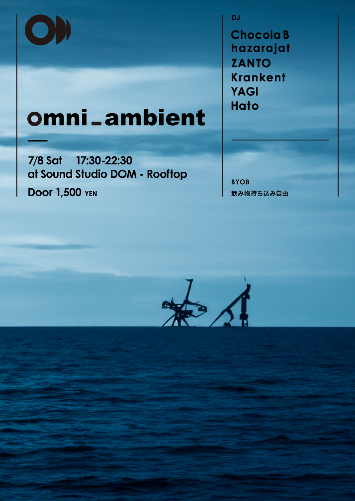 2月に続き3回目の開催となるアンビエントパーティー!暖かく(暑く)なってきたのでStudio DOMのrooftopでまたやりますよ。是非寝にいらして下さいませ。