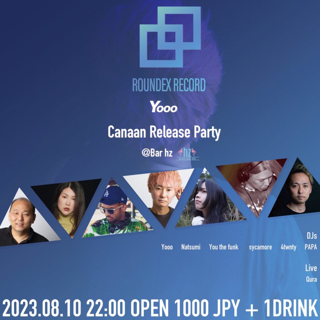Roundex Record "Canaan" Release Party 日本 福岡県 schedule: 2023.08.10 22:00 lineup: Yooo, Natsumi, You the funk, PAPA, sycamore, Qura, 4twnty DJ